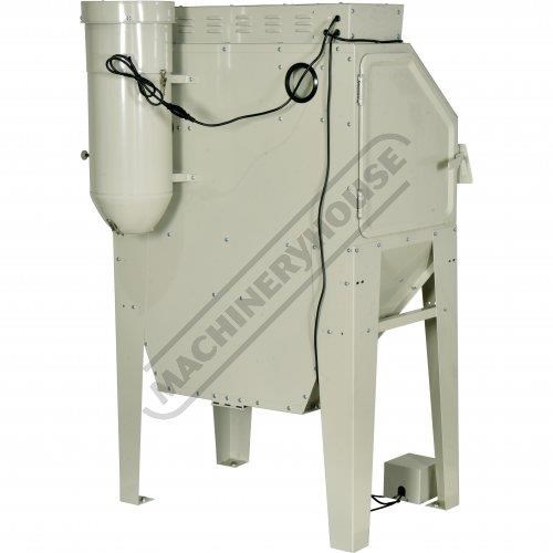 At the rear of the machine there is a built in vacuum system that's connected to the cabinet to extract fine dust and airborne particles from the cabinet whilst blasting so you always have clear vision at your item. There are two option for blasting with this unit, the first option is using the conventional blast gun with flexible hose to maneuver around your part, the second option is to use the fixed vertical blast nozzle that is directed from the ceiling of cabinet and is activated by the electrical foot control.