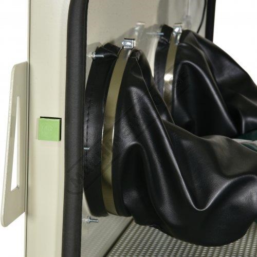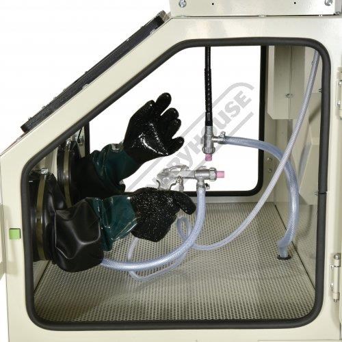The SB-375 is well known for a heavy duty quality build for a workshop sandblasting cabinet that features a large tempered glass viewing screen and powerful internal LED light to brighten up the work area inside the cabinet. It has two side access doors fitted and are sealed all way round the door perimeter, and for additional protection, it also has a safety interlock on each side door that prevents the machine to operate whilst any of the two side access doors have been accidently left open.