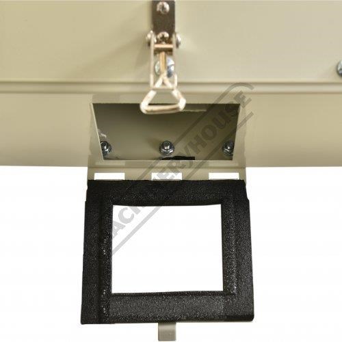 When it's time to put new blast media in or maybe you need to just swap it out for a different grade type, you just place a container underneath the center of the cabinet flick the latch to open the hatch door & drop out the used media, close hatch door and reload in the new media from the top, job done blast away.