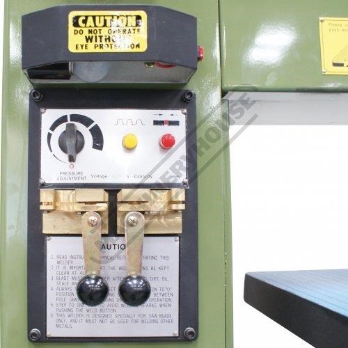 Blade welding unit with annealing device blade shear & grinder fitted to front of machine for convenient blade welding