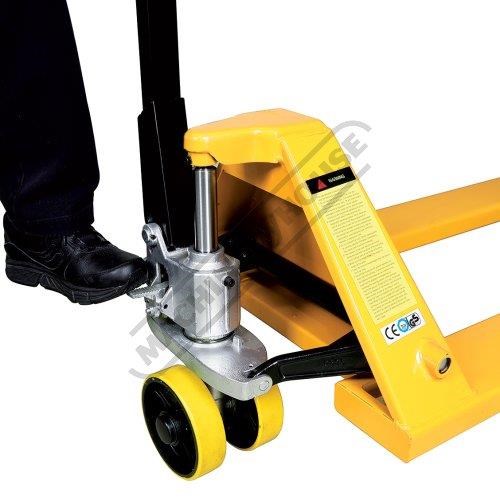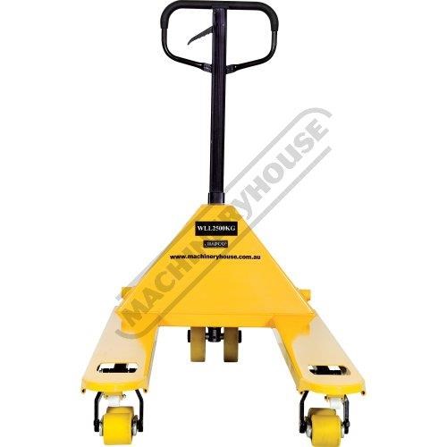 This 2500KG pallet truck is suitable for many types of industries for example, Hire Companies, Work Sites, Manufacturing Shops, Shopping Centres, Warehousing Stores, Bottle Shops & Schools & TAFES.