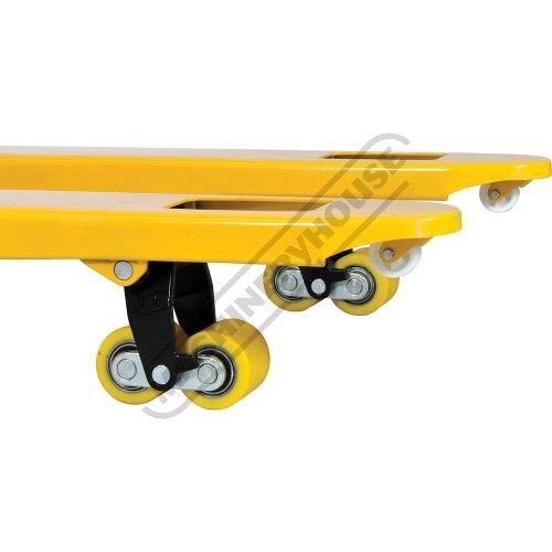 Dual front wheels ideal for mezzanine floors to distribute the load