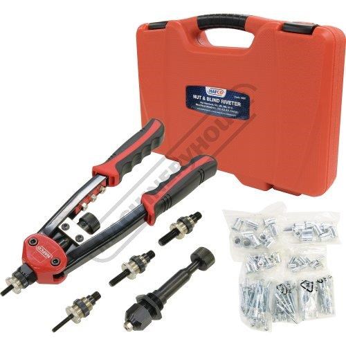 HAFCO RNB40 Nut & Blind Riveter Set - 130 Piece Ø3.2mm, Ø4.0mm, Ø4.8mm, Ø6.4mm Aluminium Blind Rivets M5, M6, M8, M10 Aluminium Rivet Nut Inserts