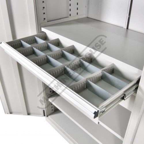Drawers come standard with 10 steel dividers per drawer