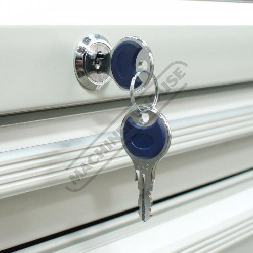 Single Key lock design for safe storage. Each drawer has a mechanical safety lock which allows one drawer to be opened at a time preventing the cabinet to tip over
