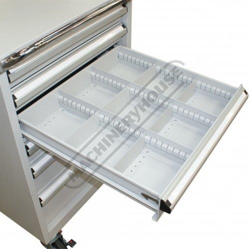 - Drawer 3 & 4 - 100mm high with moveable steel dividers 3x3 layout