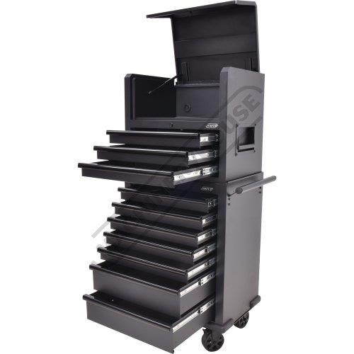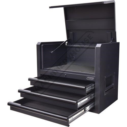 Locked and loaded with features, like gas struts for easy access, key lockable security, and ball-bearing drawer slides - these boxes are as tough as your tools. With base corner protection and foam mats lining the drawers, your gear stays in prime condition as you push or pull your toolboxes with the oversize handles that can be mounted on either side.