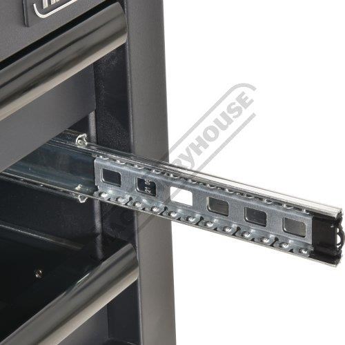Locked and loaded with features, like gas struts for easy access, key lockable security, and ball-bearing drawer slides - these boxes are as tough as your tools. With base corner protection and foam mats lining the drawers, your gear stays in prime condition as you push or pull your toolboxes with the oversize handles that can be mounted on either side.