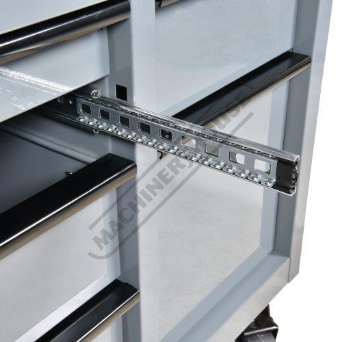But it's not just about looks. These toolboxes mean serious business. Gas struts make opening lids easy, while the key lockable feature keeps your tools safe and sound. Soft push-to-close drawers and full-length under drawer opening tabs make opening each drawer from any position a breeze. The ball-bearing slides ensure drawers smooth operation and the larger drawers even sport dual slides for extra strength. Your tools won't slide around or get damaged, thanks to the foam grip mats lining supplied in each drawer and the oversize castor wheels will make pushing these behemoths a breeze.