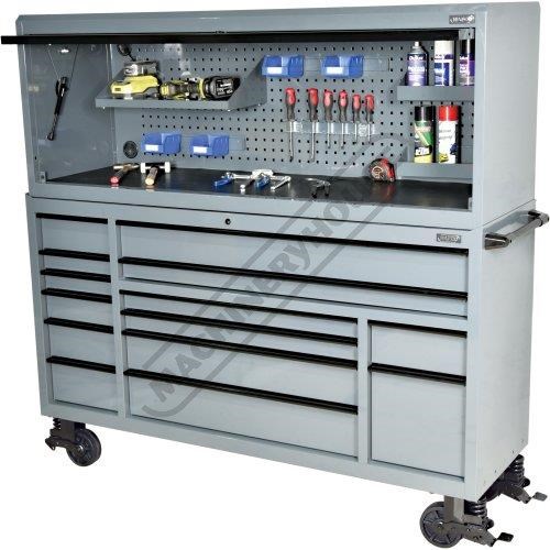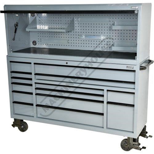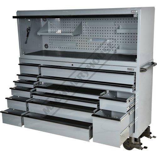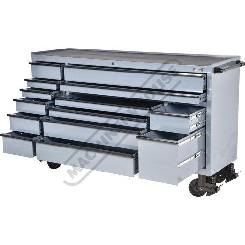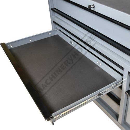 But it's not just about looks. These toolboxes mean serious business. Gas struts make opening lids easy, while the key lockable feature keeps your tools safe and sound. Soft push-to-close drawers and full-length under drawer opening tabs make opening each drawer from any position a breeze. The ball-bearing slides ensure drawers smooth operation and the larger drawers even sport dual slides for extra strength. Your tools won't slide around or get damaged, thanks to the foam grip mats lining supplied in each drawer and the oversize castor wheels will make pushing these behemoths a breeze.