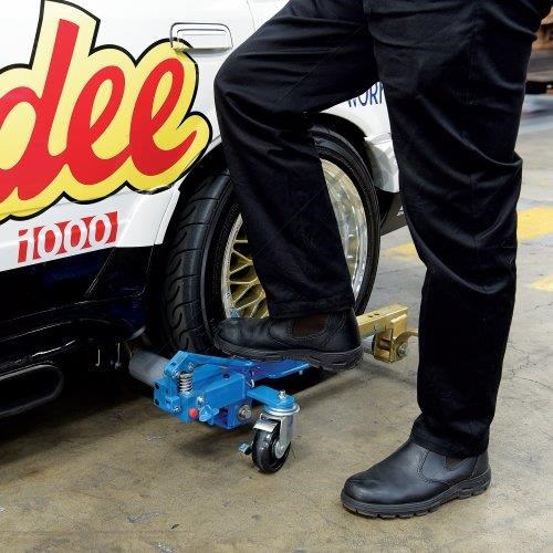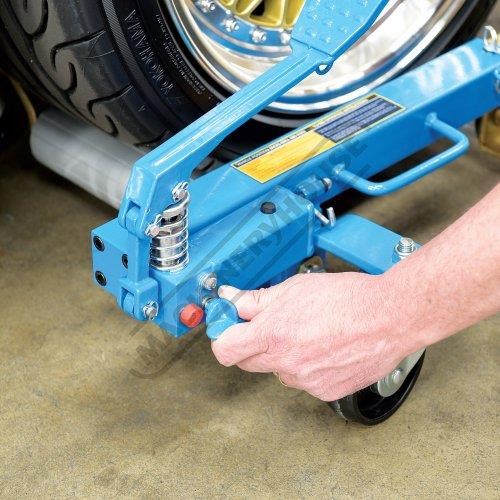 There's no jack like a VJ-680 jack. Its twin rollers slide around the tire and squeeze upward, lifting the tyre smoothly off the ground in seconds with a few pumps of the hydraulic foot pedal.