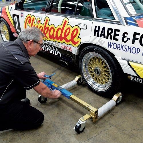 The low friction, with 360° caster wheels lets you spin, side load, and position the car without damaging the floor or the car, faster and safer than floor jacks and at a fraction of the cost of electric carts.