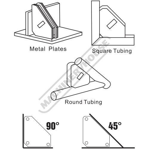 With the added benefit of a convenient on/off switch you can securely hold material while providing you with an unobstructed area for tack welds. Use the outer edges of the corner magnet for setting up materials at 45º & 90º.