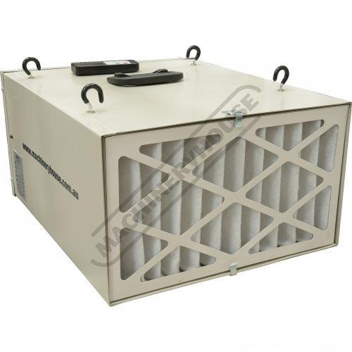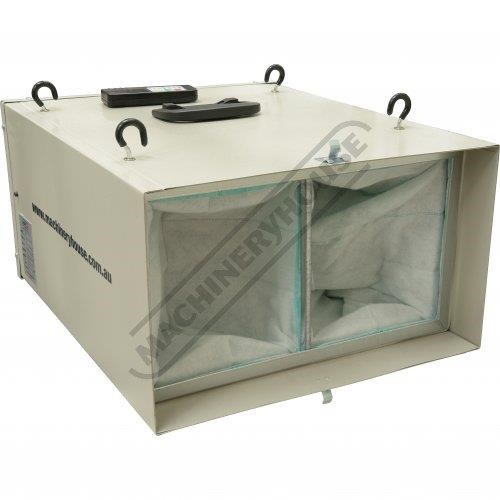 This new air filter offers great features and performance at a very competitive price. It features two stage filtration with pocket filters to provide filtration down to 1 micron. It has 3 fan speeds and a timer function so you can leave the unit to run for a period after you have finished in the workshop. Both of which can be applied by remote control, which is included with the machine. Also supplied with mounting hooks and chains.
