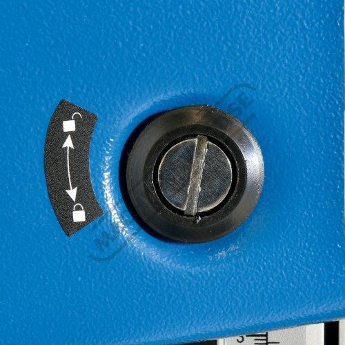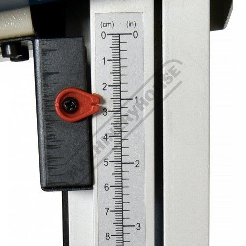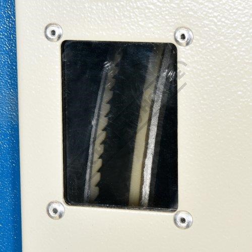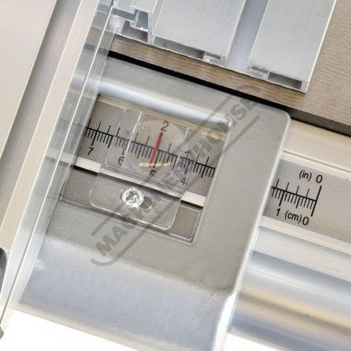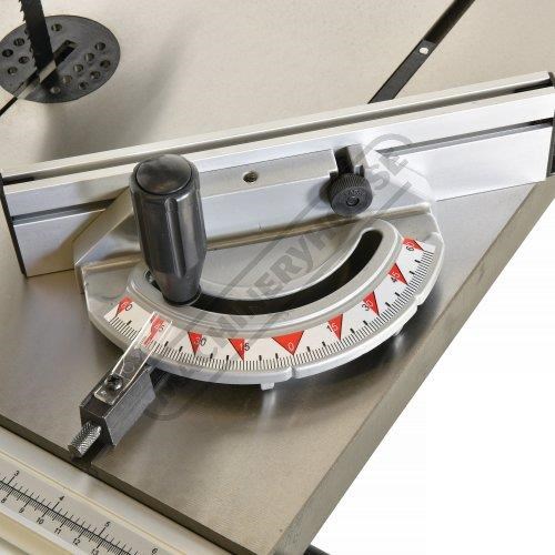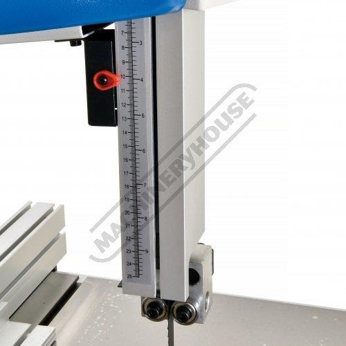 The blade tension guide indicator makes it very easy for the operator to adjust when swapping over the balde, simply look through the access panel on front door and wind the tension up so it aligns with the blade size you are currently going to install. It has a fair size 535 x 435mm cast iron table with an aluminium rip fence and mitre guide to help you cut straight or angles to the required size. The table mounting trunnions are adjustable to get your tale to tilt from 90 to 45 degrees and has a quick action locking lever