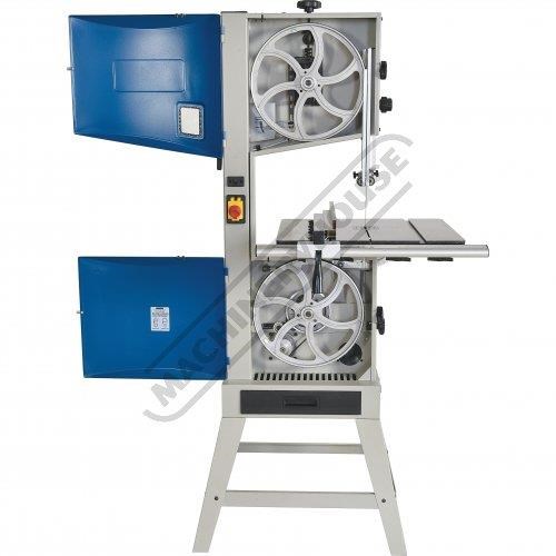 This bandsaw has a welded steel frame designed to keep your machine from twisting whilst cutting at 340 x 225mm capacity. It has a generously 545 x 515mm cast iron table with an aluminium rip fence and mitre guide to help you cut straight or angles to the required size. The table mounting trunnions are adjustable to get your tale to tilt from 90 to 45 degrees and has a quick action locking lever. This machine also has its own LED light that is mounted to a flexible arm so the light can be adjusted direct on the cutting line no matter what timber size you are cutting.