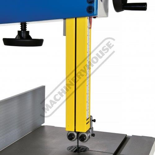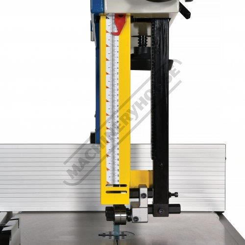 The BP-430A manufactured in Taiwan offers excellent safety features including interlocked blade guard doors, safety magnetic nvr power switch, 2 x height option fence, twin extraction ports and is all compliant to CE standard. A rigid welded steel chassis cast iron table and heavy-duty ball bearing blade guides are included, along with a rigid rip fence and precision mitre fence.