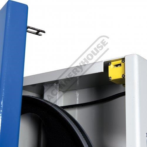 Two viewing windows make blade tracking and tensioning possible while the machine is running