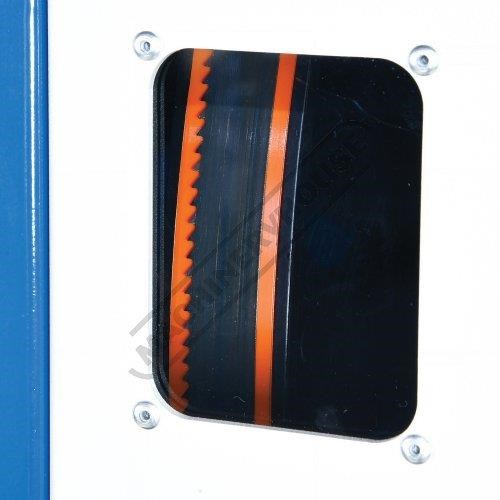 Two viewing windows make blade tracking and tensioning possible while the machine is running