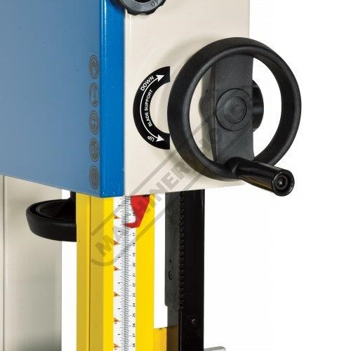Rack & pinion adjustment on top blade guide