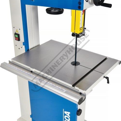 Worm gear systems incorporated for both table tilting and blade guidepost movement are used for quick & easy adjustment. Another very important feature that is also often forgotten is that the machine offers cast iron blade wheels that are balanced for smooth running and helps eliminate excessive vibration.