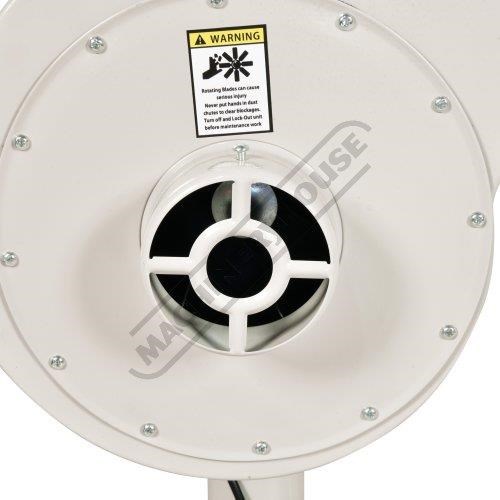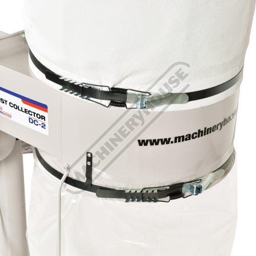 The dust and shavings of LPHV extractors are sucked through the impeller fan blade and then the waste falls into the lower bag, the air being exhausted through the top filter bag, collecting some of the fine dust on the way. This type of extraction shifts huge volumes of air at low pressure and they are very efficient at removing bulk waste such from Planers, Thicknessers & Wood Lathes etc, hence some people call them chip collectors. The down fall with all LPHV dust collector systems is when you reduce the intake hose from 100mm to 32mm the air flow volume is affected dramatically.