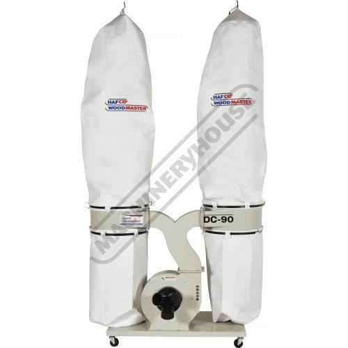 The Hafco Woodmaster DC-90 Industrial Twin Bag Dust Extractor is the ideal unit for the professional workshop. The powerful 3.75kW / 5hp 415V motor, delivers an exceptional 3200cfm suction. Triple 100mm inlets allows for attaching up to 3 machines and fitted with dual 2 micron filter bags and collection bags, this unit will cater to the cabinetmaker cutting particle board and MDF, or the furniture maker using solid timber.