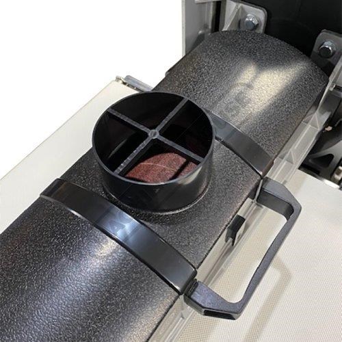 This machine is constructed from high grade cast aluminium to enable portability from site to site with ease. Fitted to this machine as standard feature is a variable table feed dial enabling operator to finely adjust surface finish required. It is recommended by the manufacturer to use a dust extraction system (not included) please refer to optional accessories.