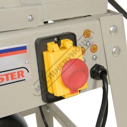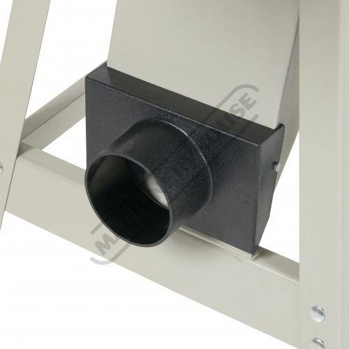 The side fence, which is a heavy cast iron unit with a ground surface, is held by a robust cast iron bracket. This is clamped to the table by a substantial hand lever and slides smoothly across the bed guided by a rail. The fence is fully adjustable for angles between 45°, 90° and 135°. Waste extraction is from the side rear of the machine via a 100mm outlet port that is fixed to the stand and should be connected to a suitable dust extractor.