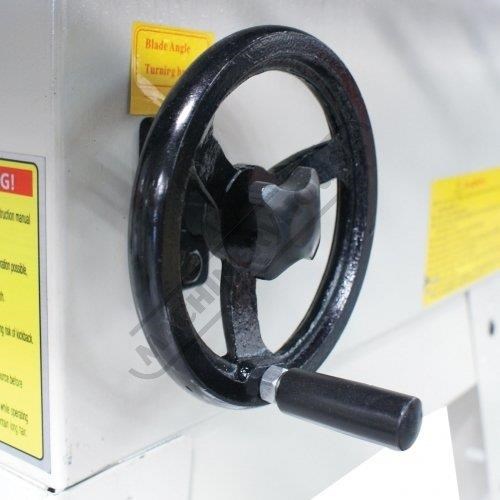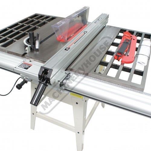 The cast iron table provides great strength and rigidity as well as a smooth working surface. The micro adjustable rip fence is full length and cam locked solidly onto rails at the front and back of the table and can be used both sides of the blade. A mitre guide included slides in a T-slot grooves in the table on either side of the blade. Both the blade height and tilt controls have large handles that are conveniently located on front & side of the table saw.