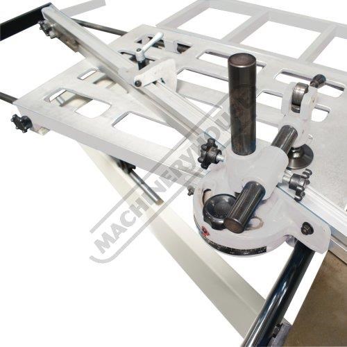 The main table is extremely heavily webbed cast iron which provides a rigid mounting point to connect the trunnion mechanism to support the 305mm main blade. The induction motor power is provided by a 2.2kW / 3hp 240V via three A-section belts that will drive the blade through the most stubbornness timbers. The heavy-duty fence securely locks onto the front and rear of the extra-long square metal tubes to allow a huge 1220mm ripping capacity.