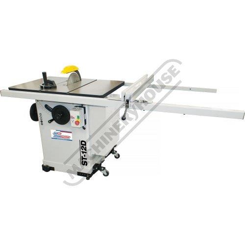 This industrial quality ST-12DP2 table saw package deal with sliding table & over head guard is manufactured in Taiwan and is practically compact in size but of very robust construction and primarily designed to rip through all the hard timbers that is required in many of today's professional workshops.