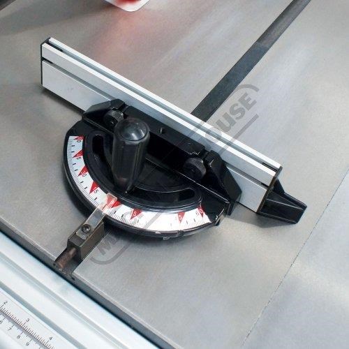 The cast iron table provides great strength and rigidity as well as a smooth user-friendly working surface. The micro adjustable rip fence is full length and cam locked solidly onto rails at the front and rear of the table and can be used on either side of the blade. The included mitre guide slides in T-slot grooves in the table which are also located on either side of the blade. Both the blade height and tilt controls have large handles that are conveniently located on front & side of the table saw.