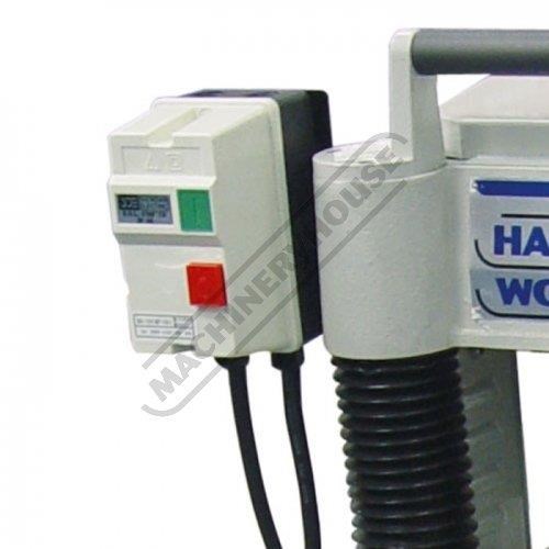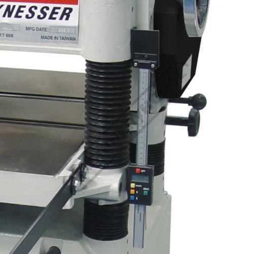 The cutter head is supported by 4 x solid pillars at each corner and the steel drive rollers have ribbing to ensure positive grip on the timber through the machine via two speed gearbox at a rate of 16 or 20fpm. The feed roller pressure can be adjusted with the four adjusters on the top of the machine. The depth of cut is set by means of the cranked handle on the side using the setting scale positioned on the in-feed side or digital readout.