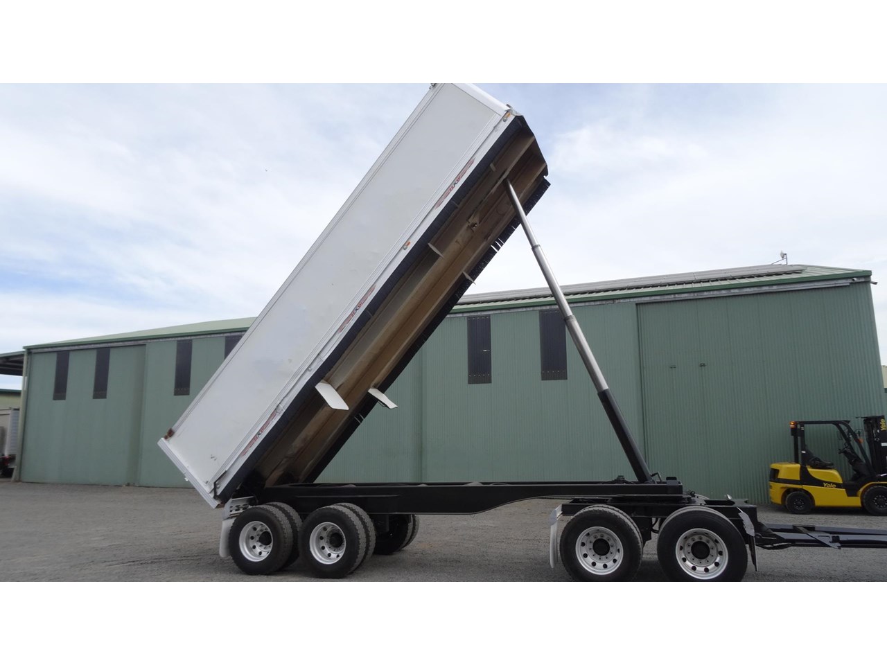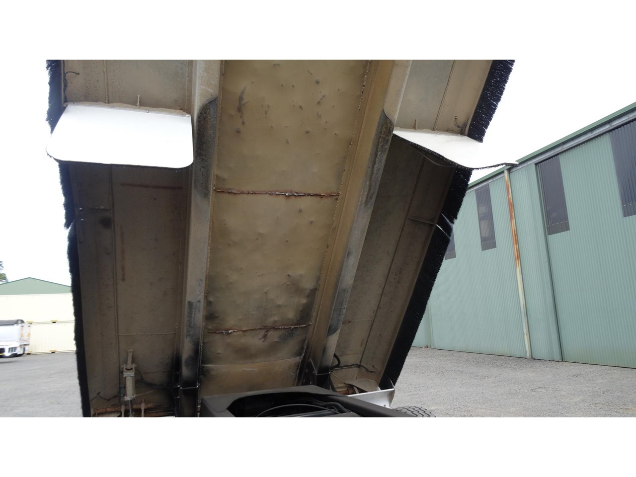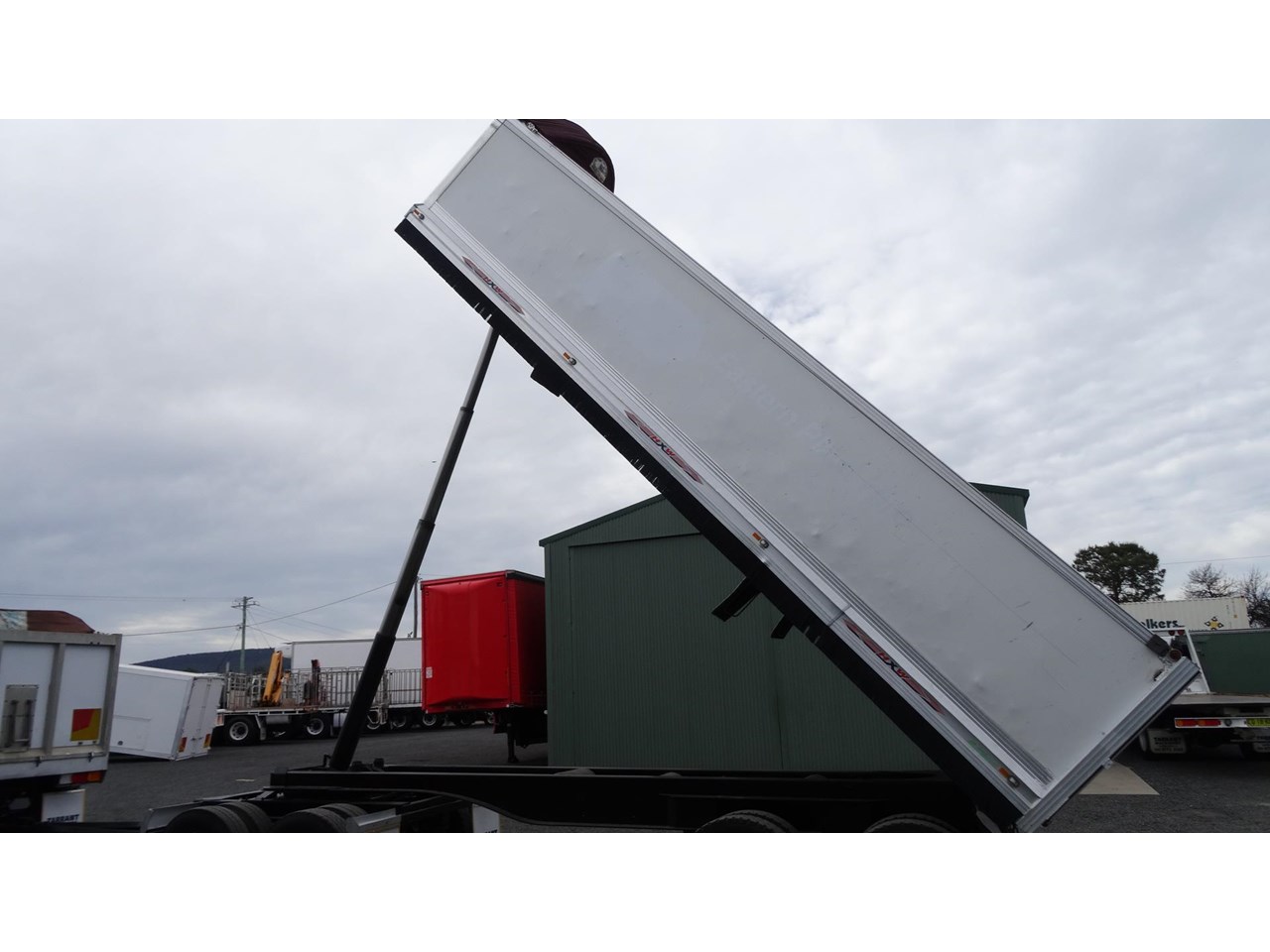 HAMELEX WHITE D4 QUAD AXLE CHASSIS TIPPER, YEAR-7/2007, ALLOY BODY, AIR TAIL GATE, 10 STUD ALLOY RIMS, 34000 ATM, DRUM BRAKES, 11.35M FROM RING FEEDER TO REAR OF TRAILER, 5.1M FROM CENTRE OF FRONT AXLES TO CENTRE OF REAR AXLES, 1.4M FROM CENTRE OF REAR AXLES TO REAR OF TRAILER, 4.9M FROM RING FEEDER TO CENTRE OF FRONT AXLES, ELECTRIC RETRACTABLE COVER TARP, LED LIGHTS, 7.6M LONG X 2.2M WIDE X 1.3M HIGH(ALL INSIDE MEASUREMENTS), S/N-2249. PRICE $39,900.00 INC GST. LOCATED IN ARMIDALE NSW.
