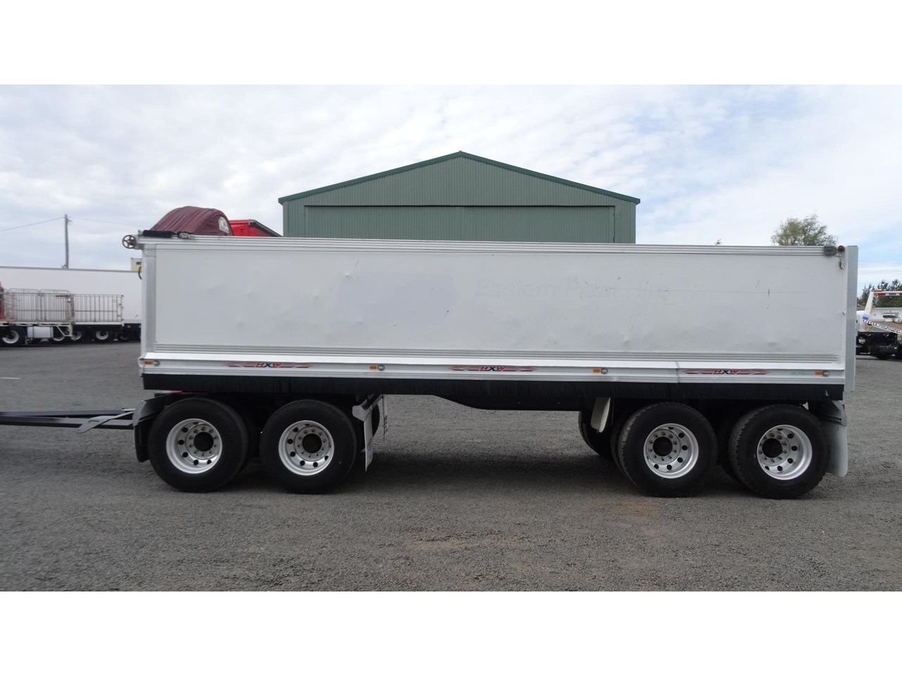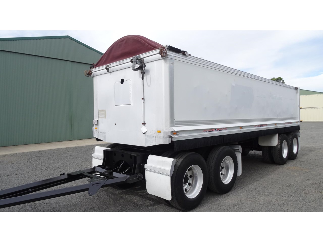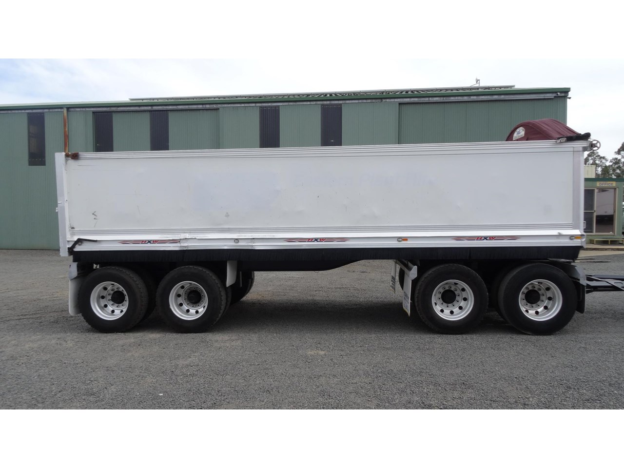 HAMELEX WHITE D4 QUAD AXLE CHASSIS TIPPER, YEAR-7/2007, ALLOY BODY, AIR TAIL GATE, 10 STUD ALLOY RIMS, 34000 ATM, DRUM BRAKES, 11.35M FROM RING FEEDER TO REAR OF TRAILER, 5.1M FROM CENTRE OF FRONT AXLES TO CENTRE OF REAR AXLES, 1.4M FROM CENTRE OF REAR AXLES TO REAR OF TRAILER, 4.9M FROM RING FEEDER TO CENTRE OF FRONT AXLES, ELECTRIC RETRACTABLE COVER TARP, LED LIGHTS, 7.6M LONG X 2.2M WIDE X 1.3M HIGH(ALL INSIDE MEASUREMENTS), S/N-2249. PRICE $39,900.00 INC GST. LOCATED IN ARMIDALE NSW.