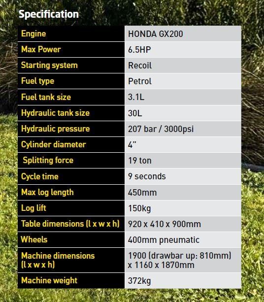 - Genuine 19 tonnes of splitting force and 450mm splitting height
