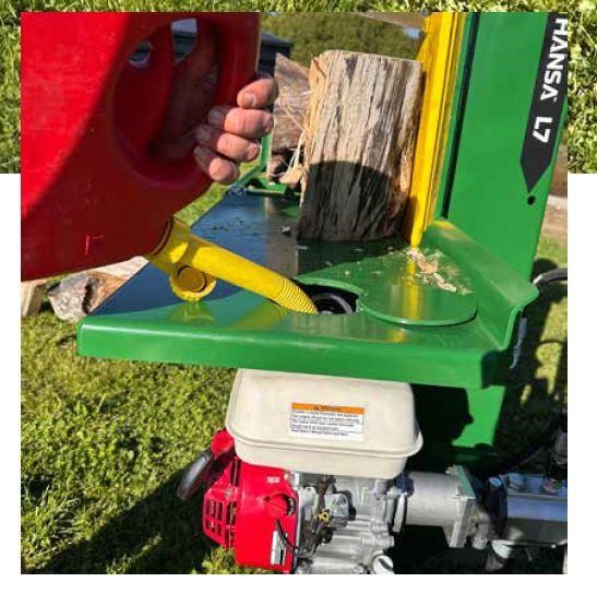 Designed with storage in mind, the compact footprint, folding drawbar, and under-table engine minimise space requirements. Its unique low-profile beam design keeps the overall height down allowing it to fit through a standard garage door. Refuelling is quick and convenient thanks to an access port built into the table. And for all-day use in the sun, an integrated umbrella holder adds a touch of operator comfort. Robust, efficient, and thoughtfully engineered the L7 is the ideal log splitter for lifestyle block owners seeking power, safety, and convenience without compromise.