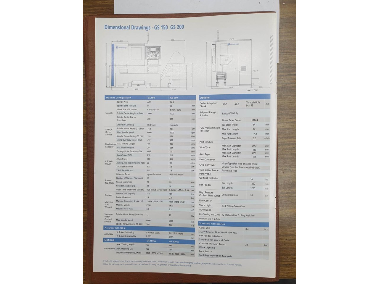 We have, in excellent condition, a Hardinge GS200 CNC lathe for sale