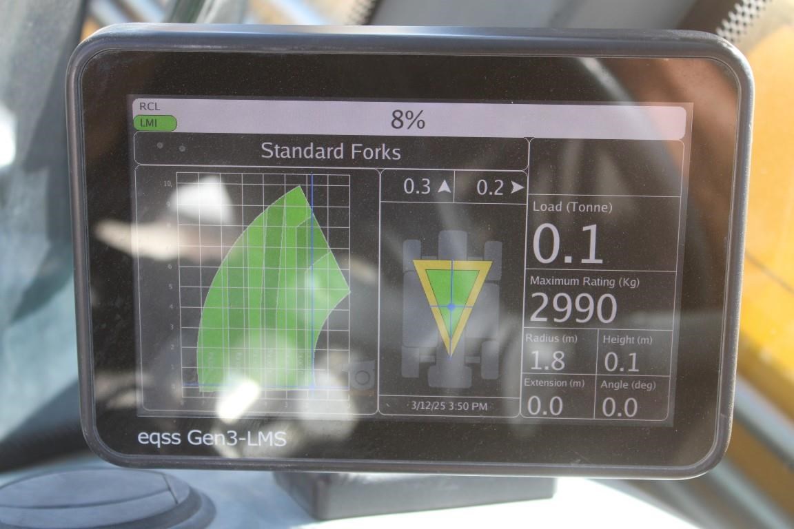 2016 Model, 2450 Hours Showing, Air ROPS Cab, 3T Lift Capacity, 10M Lift Height, Perkins 100HP Engine, 2 Speed, 4WD, 4WS, Auxiliary Hydraulics, Adjustable Forks, Hydraulic Tilting Axles, Electronic Load Chart