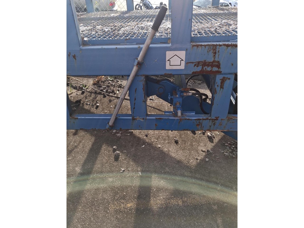 This unit is built for high volume freight operations. Constructed from a steel frame with mesh decking for excellent grip and drainage. Features integrated side safety rails, adjustable height hydraulic lift with manual pump, and chain tie-downs for added stability.