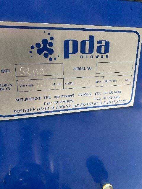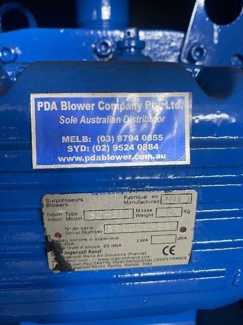 PDA Hibon Blower.(Silenced) Model S2H31 80M3/hr 30KPag. Motor 5kw 415v /3/50/60hz. 1829 rpm blower speed. Year 2013. Fitted with safety Valves on 2.5inch discharge. Ex R