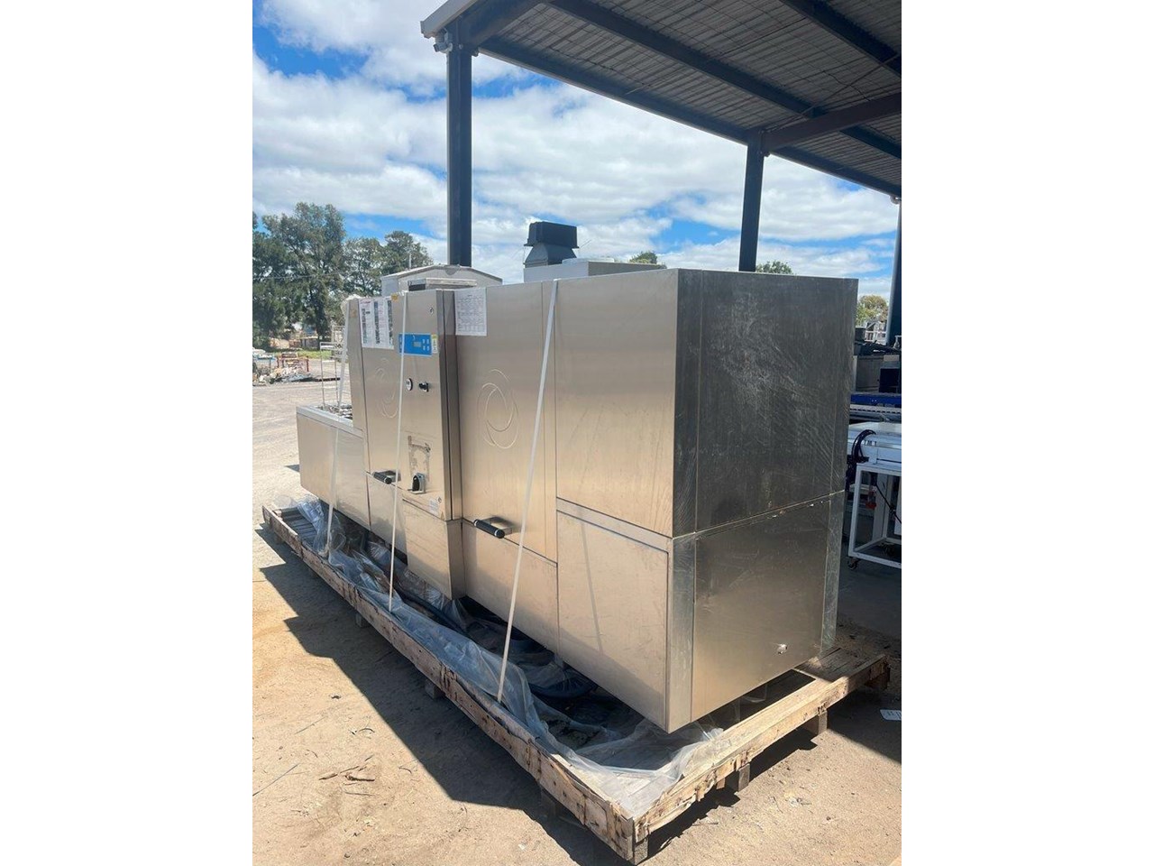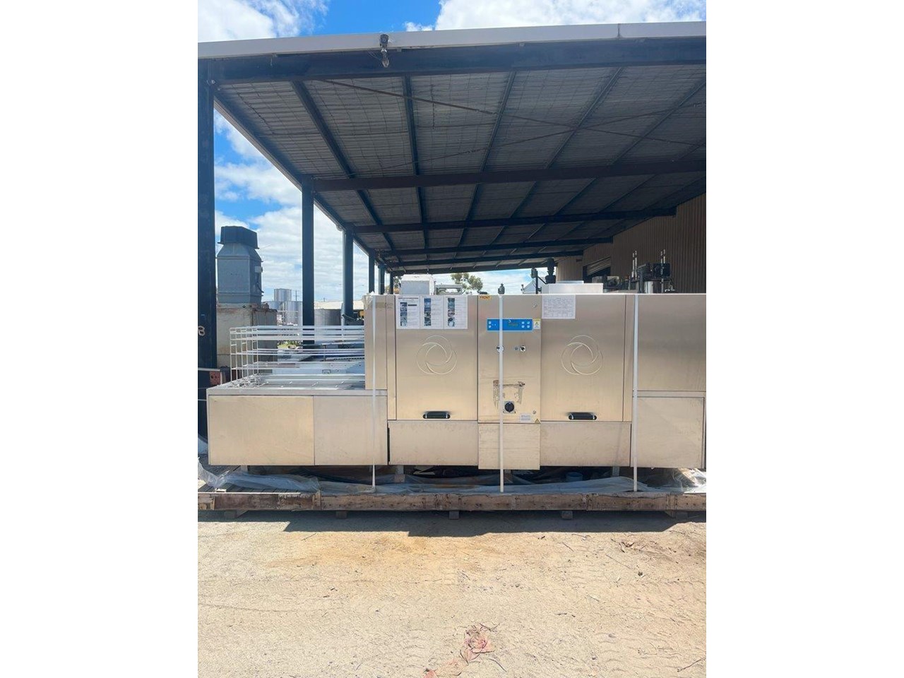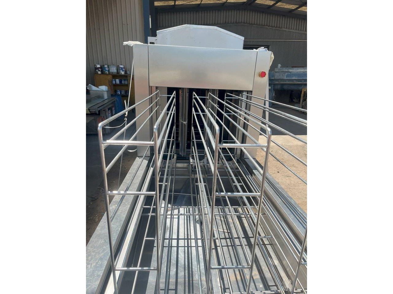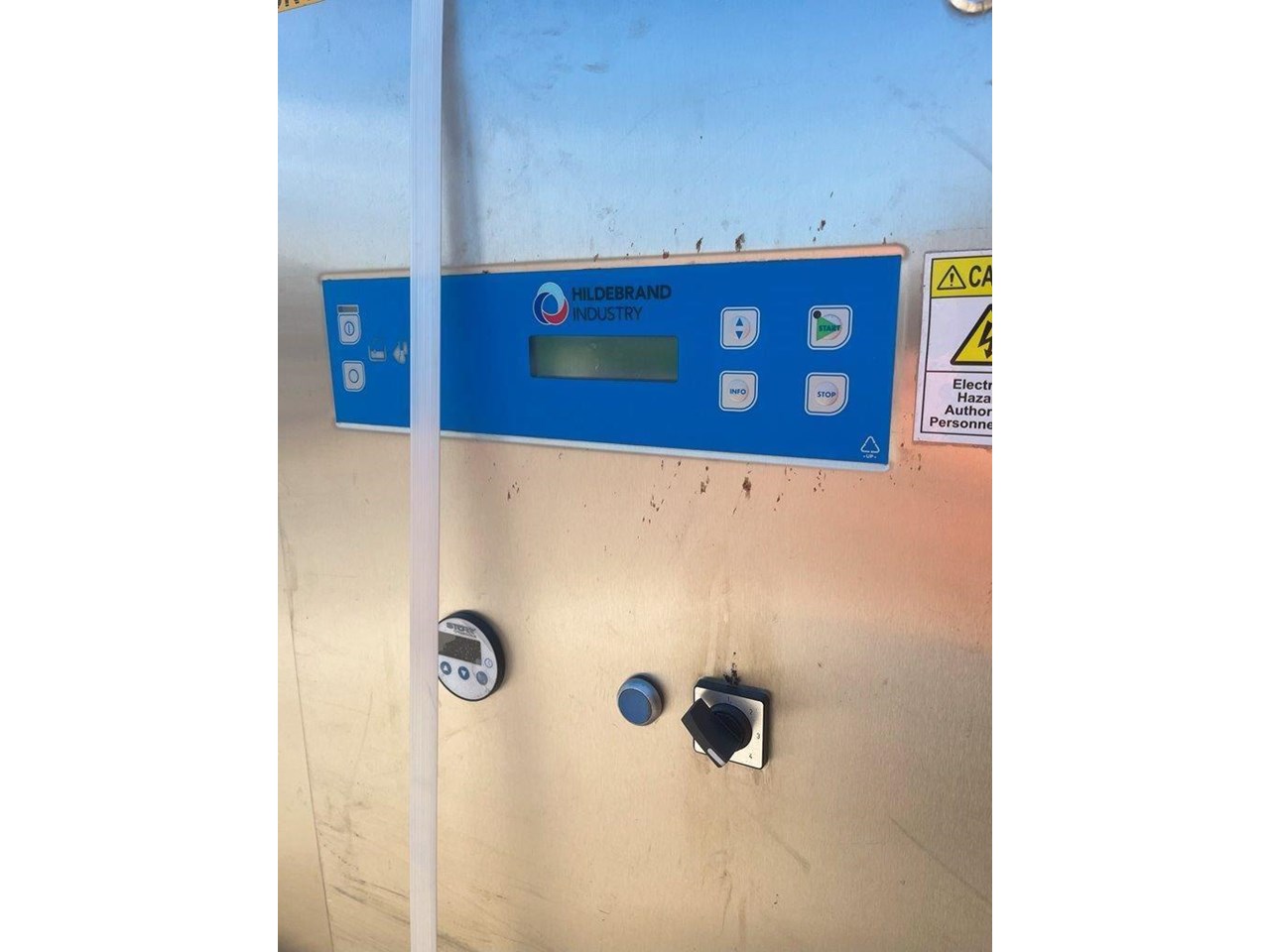 Hildebrand Industry - Cleaning Unit. This system is suitable for washing, rinsing and drying a wide variety of cleaning goods. Whether containers, molds or parts of chocolate processing plants; the Minijet does a great job, runs efficiently, economically and is characterised by its extremely user-friendly one-person handling. Model: MINIJET HB 750-F3-L/E Production Year: 2016 Power: 400V, 3N Phase, 50Hz Water Pressure: 2.5-3.5 BAR Washing rinsing and drying of Moulds up to 1260 x 110 x 550mm (L x H X W) Total machine length is 4.5mt long Tank 180lt Rinse water per batch 13lt Electric power motors 10kw Electric Power Heating 45kw Exhaust Air 3500 m3/hr Motor driven wash and carrier for forward and reverse movement. Maintenance and cleaning doors on the front side of machine IP55 splash proof ss cabinet. 5 cleaning prorgams Electrically heated tank HILDEBRAND UNIVERSAL CLEANING AND DRYING SYSTEM TYPE MINIJET 750-F3-L/E This machine is equipped with a 1 to 3 lane cleaning trolley, a washing and rinsing zone and a high capacity drying zone. It is specially designed for the cleaning of molds ,containers (bins, etc.), animal cages, small parts, etc., and it is designed according to the customized washing goods. OPERATION The transport trolley is manually filled with the items to be washed. After the start of the washing program, the wash cart moves independently to the washing zone. By moving the trolley forward and backward, the efficient washing and rinsing of the items to be washed takes place. Afterwards, the trolley moves through the high-performance drying zone, where the washed goods are dried at high capacity, back to the unloading station. Unit in good condition Ex chocolate factory washing chocolate moulds.