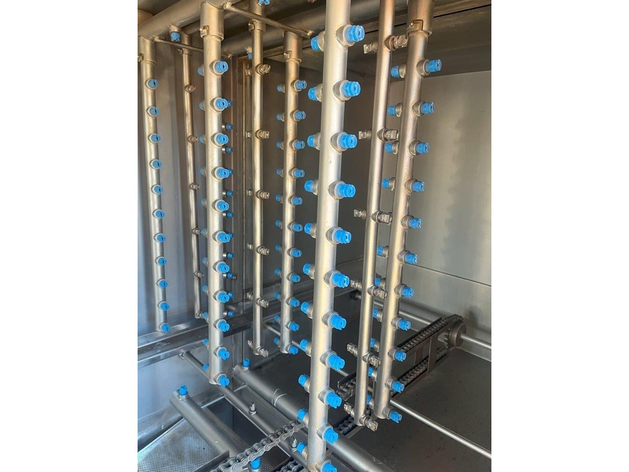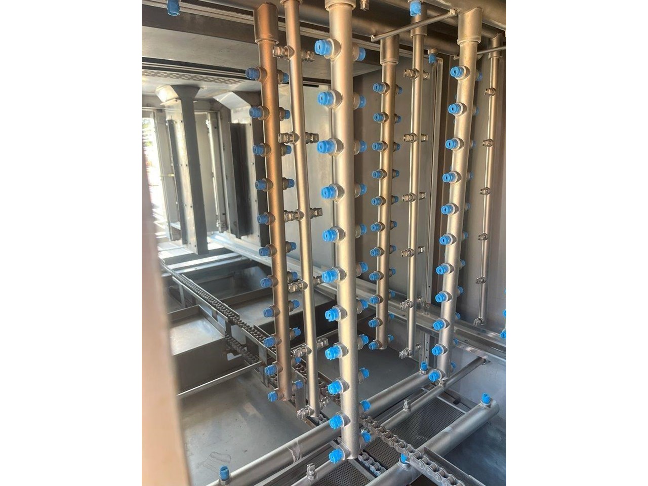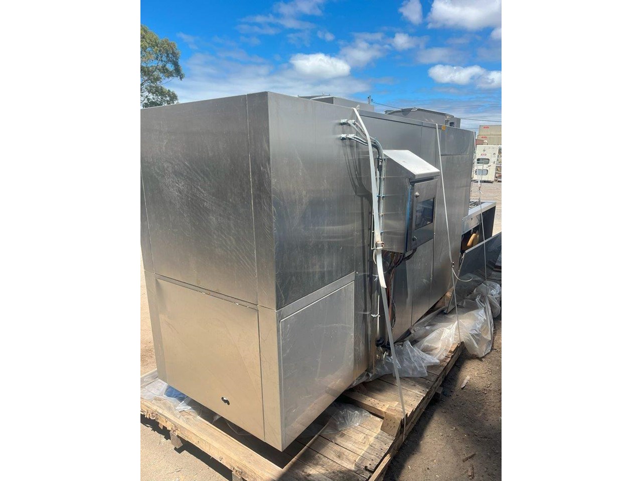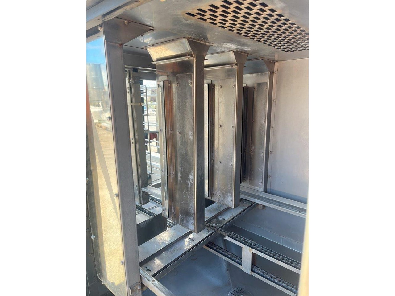 Hildebrand Industry - Cleaning Unit. This system is suitable for washing, rinsing and drying a wide variety of cleaning goods. Whether containers, molds or parts of chocolate processing plants; the Minijet does a great job, runs efficiently, economically and is characterised by its extremely user-friendly one-person handling. Model: MINIJET HB 750-F3-L/E Production Year: 2016 Power: 400V, 3N Phase, 50Hz Water Pressure: 2.5-3.5 BAR Washing rinsing and drying of Moulds up to 1260 x 110 x 550mm (L x H X W) Total machine length is 4.5mt long Tank 180lt Rinse water per batch 13lt Electric power motors 10kw Electric Power Heating 45kw Exhaust Air 3500 m3/hr Motor driven wash and carrier for forward and reverse movement. Maintenance and cleaning doors on the front side of machine IP55 splash proof ss cabinet. 5 cleaning prorgams Electrically heated tank HILDEBRAND UNIVERSAL CLEANING AND DRYING SYSTEM TYPE MINIJET 750-F3-L/E This machine is equipped with a 1 to 3 lane cleaning trolley, a washing and rinsing zone and a high capacity drying zone. It is specially designed for the cleaning of molds ,containers (bins, etc.), animal cages, small parts, etc., and it is designed according to the customized washing goods. OPERATION The transport trolley is manually filled with the items to be washed. After the start of the washing program, the wash cart moves independently to the washing zone. By moving the trolley forward and backward, the efficient washing and rinsing of the items to be washed takes place. Afterwards, the trolley moves through the high-performance drying zone, where the washed goods are dried at high capacity, back to the unloading station. Unit in good condition Ex chocolate factory washing chocolate moulds.
