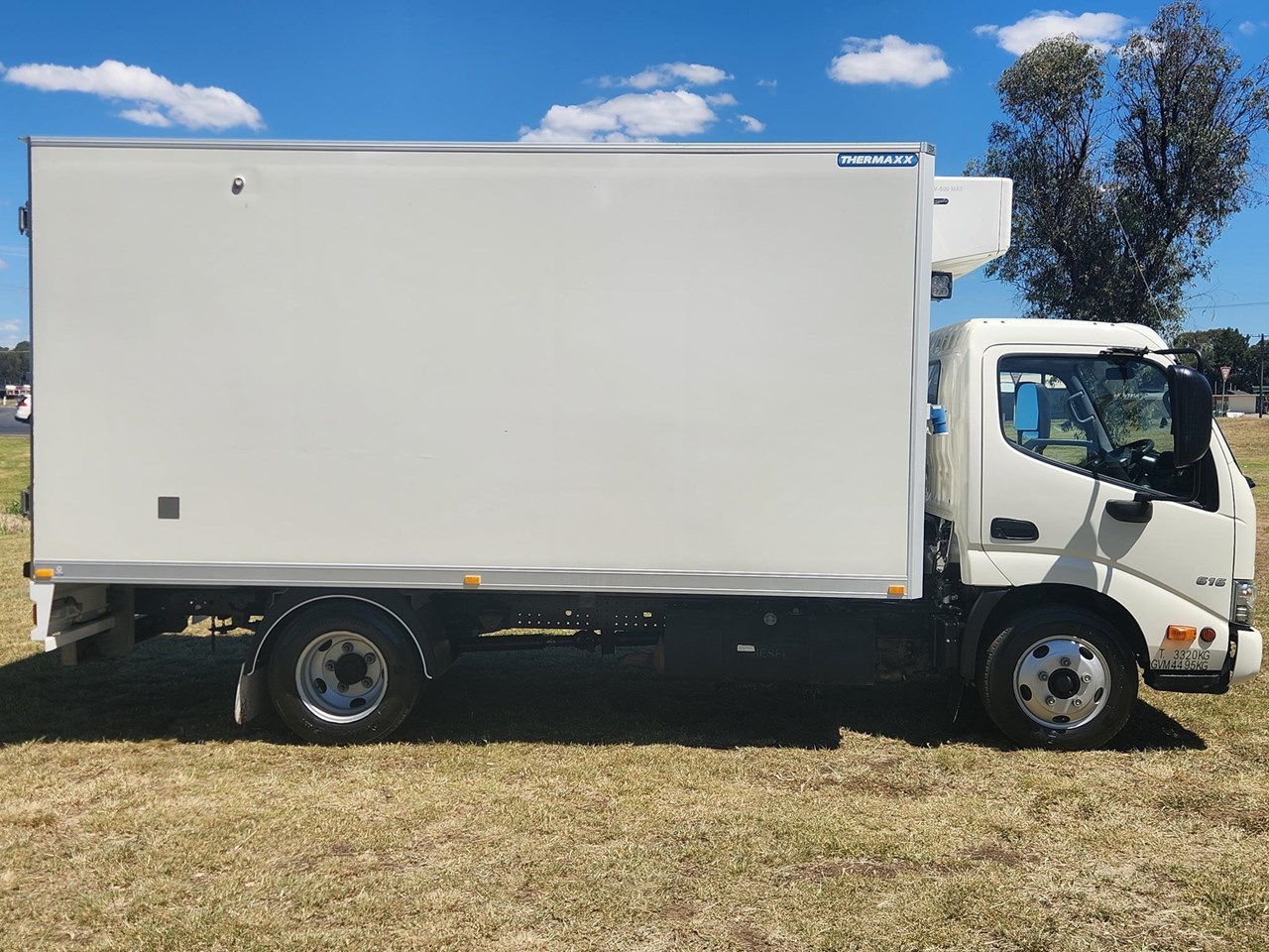 2020 Hino 300 Series 2 616 Medium 4x2 Automatic Refrigerated Pantech. Ex Woolworths Home Delivery. Car License. 3 Available. ( This is the update series with increased GVM & upgraded safety spec ) Hino 150HP 4 Litre Intercooled Turbo Diesel with 6 Speed Full Automatic Transmission,3 Seats Air Conditioning,Factory Hino Satnav with Reversing Camera Fitted with 2021 TRS Thermaxx Refrigerated Pantech Body with Thermo-King V-500 Max Spectrum Refrigeration Unit 2 Swinging Rear Doors and 1 Side Door Separate Divider at Front of Body,240V Power Backup with Power Lead 2 x Fold Up Steps,Internal Lighting & Work Lights Chiller L-3100 x W-2020 x H-1800. Freezer L-700 x W-2020 x H-1800. GVM 4495 ( Car License ) GCM 7995 Wheelbase 3300 Price includes GST & Tax Invoice Sold fully serviced with current inspection & NSW Registration Competitive finance available Delivery arranged to any state Independent inspections welcome Many other Freezer Trucks in stock including Isuzu NQR,NPR,NNR,NLR Hino Dutro 300 Series Mitsubishi Fuso Canter Iveco Daily Automatic,Automated & Manual Refrigerated Pantech,Freezer Van,Fridge Truck,Cab/Chassis,Curtainside,Traytop,Service Body,Cranetruck,Beavertail,Sweeper Truck,Water Trucks & Fire Trucks Ex Govt,Council,Forestry,National Parks,SES,Rescue Squad,Fire & Rescue Service,Rural Fire Service,Coles & Woolworths & Major Fleets