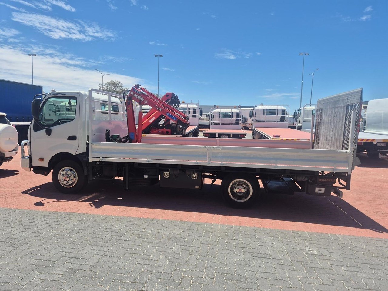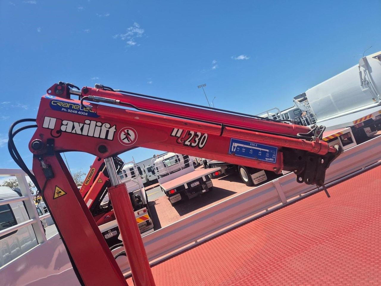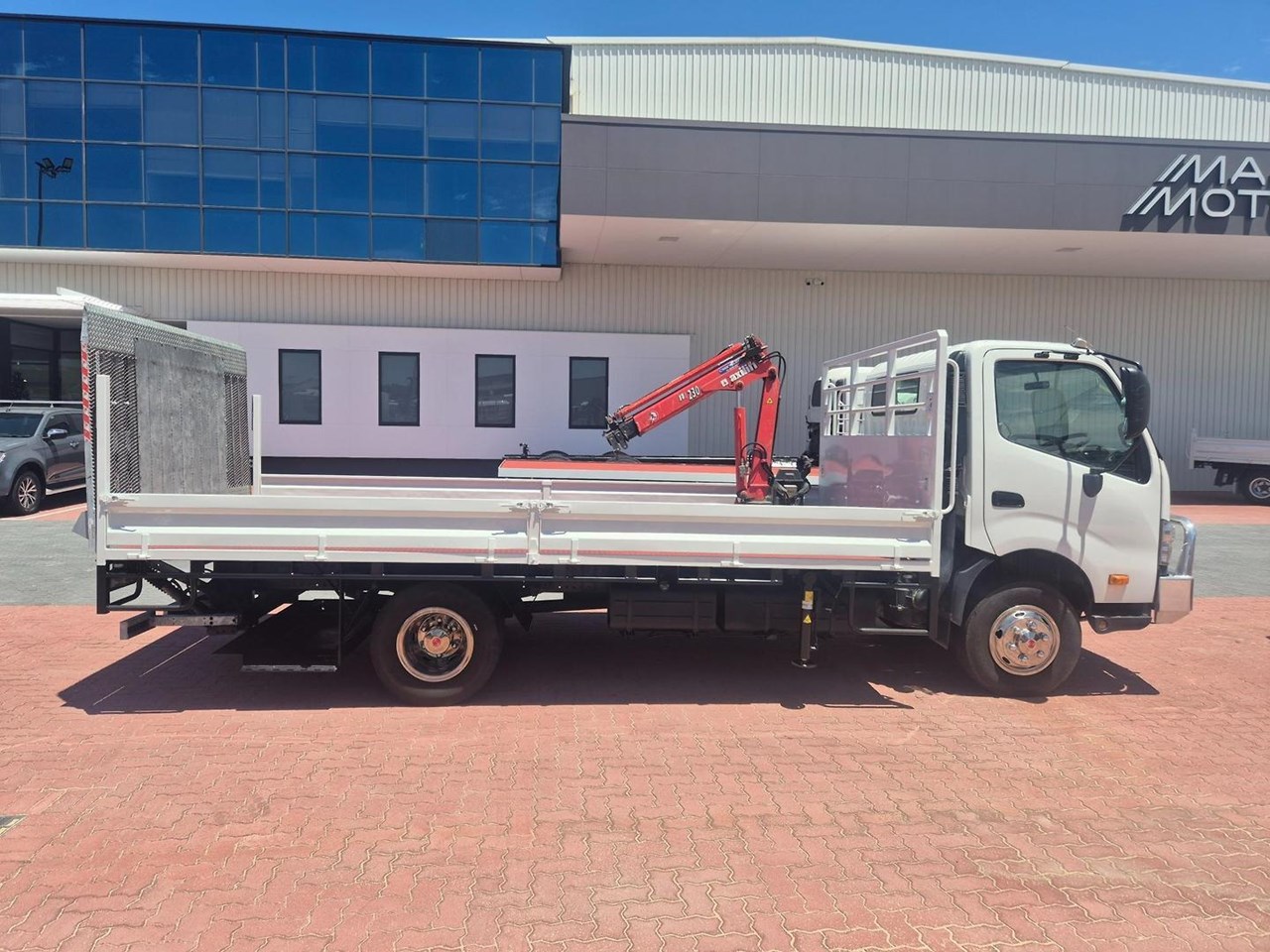 Complete with a 5m x 2.5m Heavy Duty Steel Drop Side Tray, Dual Fuel Tanks, Reverse Camera, 1000kg Tail Lift, Maxi-Lift 230 Crane, Bullbar, Alloy Wheels and featuring the Massive 210HP Powerplant coupled to a Full Automatic Transmission.