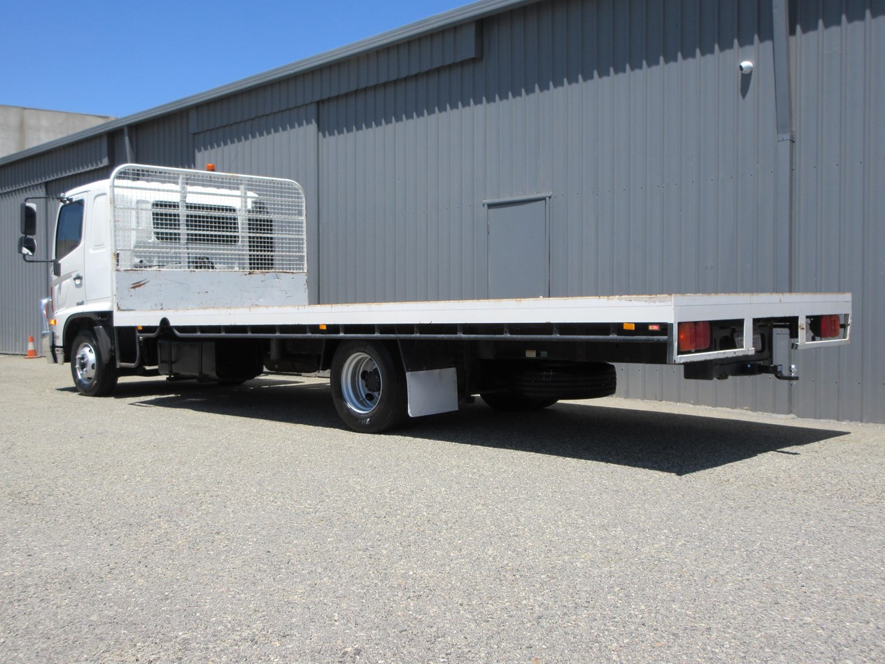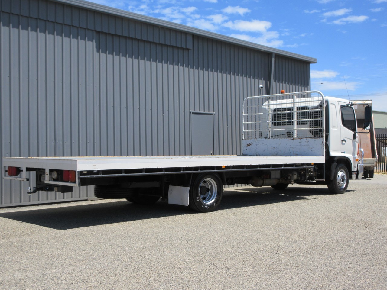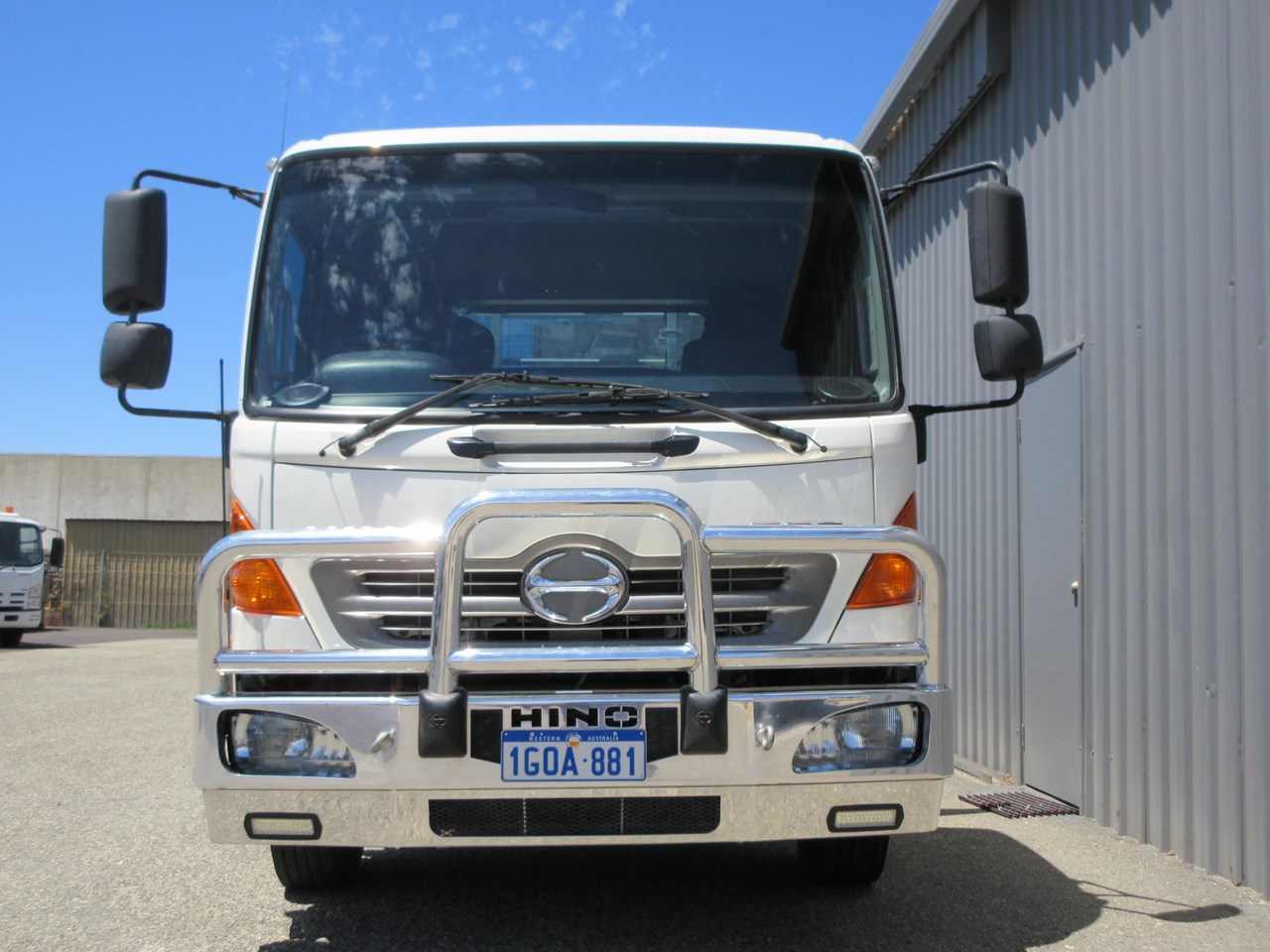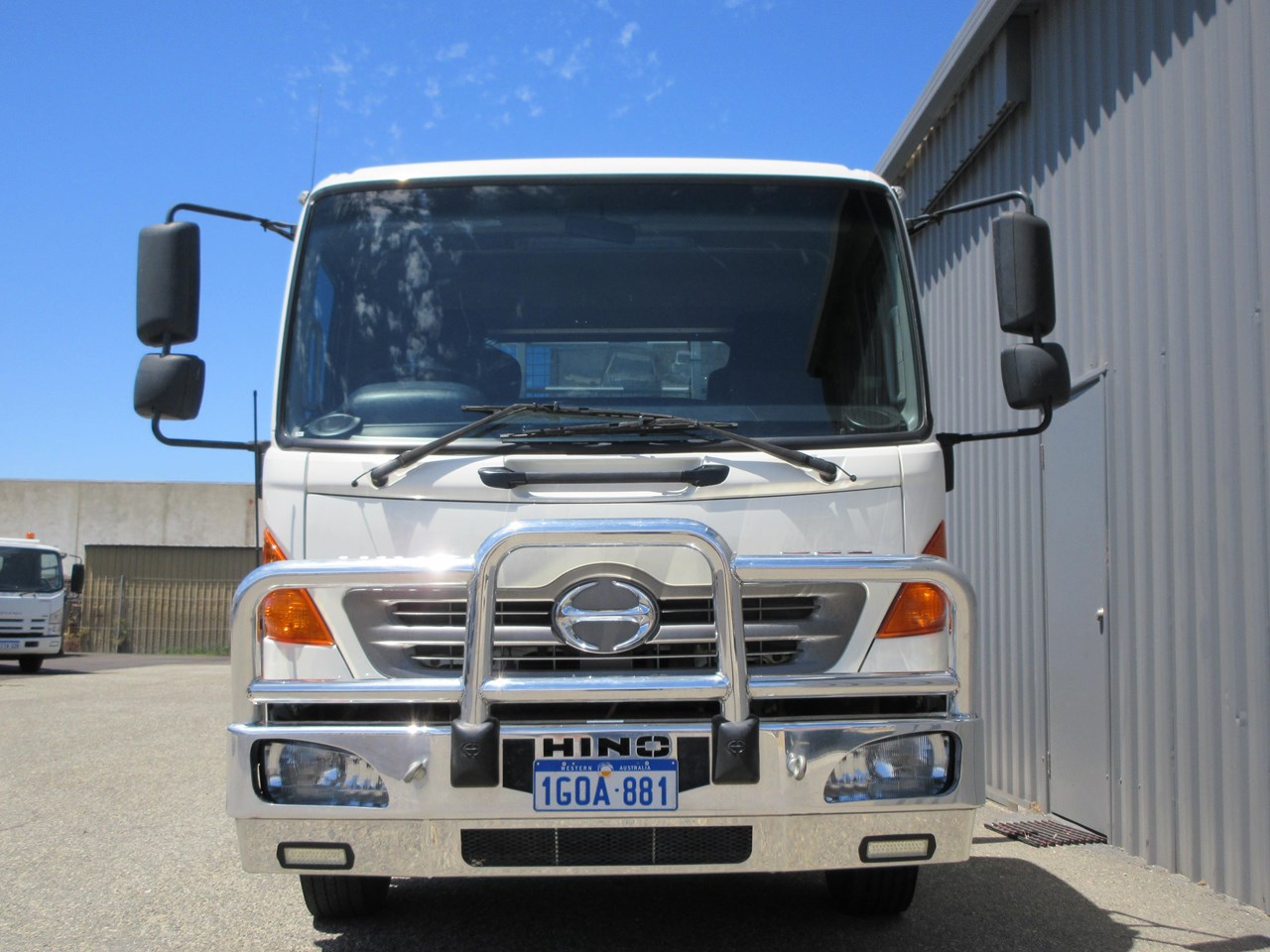 2018 Hino 500 Series FD 1124 fitted with a neat 6400mm x 2500mm Steel tray, heavy duty steps each side of tray & mesh lining to protect the cab, LED Amber Beacon & 50mm Tow Bar & a Lockable battery isolator. 40 Channel 2x way radio, Genuine Hino Polished Alloy Bull Bar, 11,000 Kg GVM & 16,000 GCM.