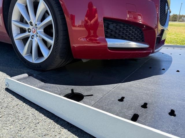 Suburban SPT4 Split Tray for Loading Low Vehicles as pictured. Tray has full length quicklash holes and muliple chain/tie down points.