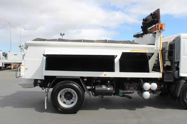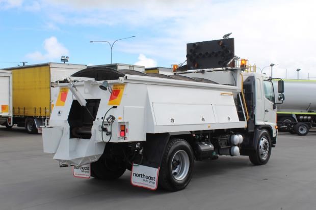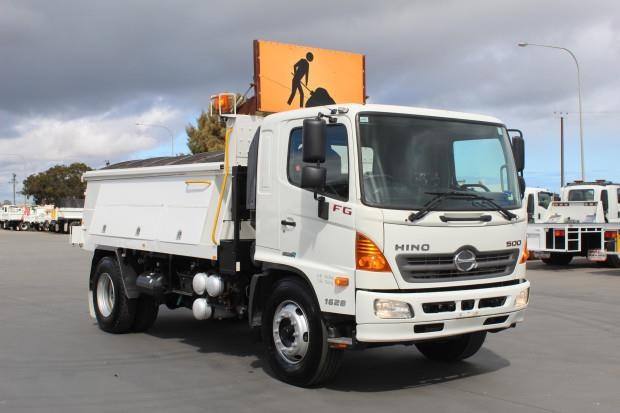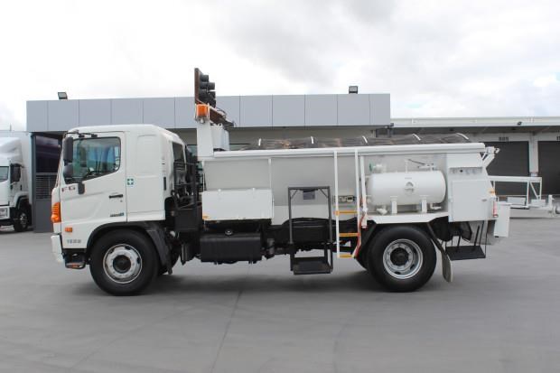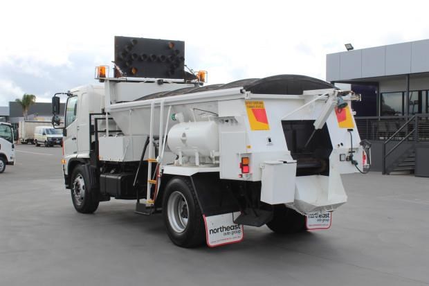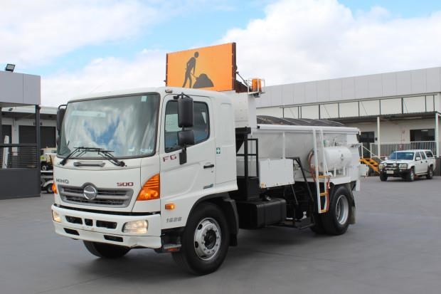 2011 Hino FG 1628-500 *EX Council* Fitted with a Flocon Body Compactor Plate Lifter, Emulsion Tank, Rear Chute, Shovel Bin Air Operatored Rear Door, Side Tipping Spoil Sin, Electronic Arrow Beard ,Amber Beacons, Reverse Cameras, Wind Out Tarp, Cone Spike, Water Tank with Hose Reel, 280 Horsepower Turbo Diesel, Allison Automatic Transmission.Travelled only 130,136 klms.