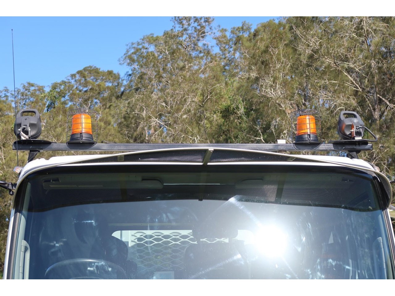 -Existing work lights and amber beacons (mounted on cab roof bar)